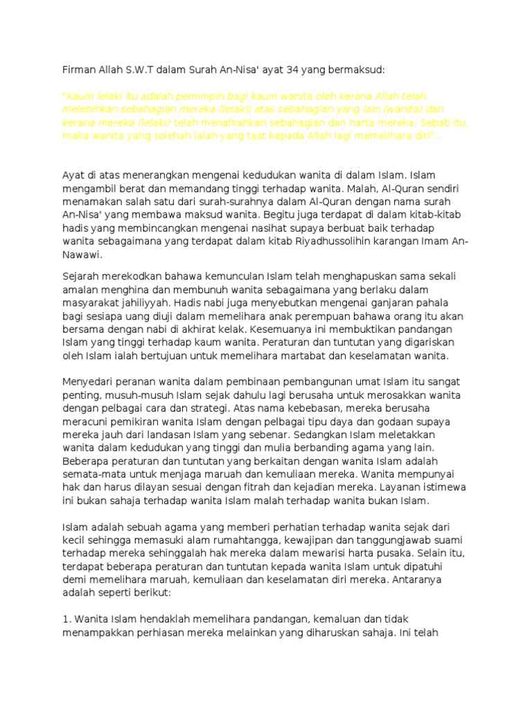 Ayat Hadits Spesial Untuk Wanita Muslimah Iffah Menjaga Kehormatan Diri Lagi Memelihara Diri Ketika Suaminya Tidak Ada Menjaga Kemaluannya Menta Ati Pdf Document