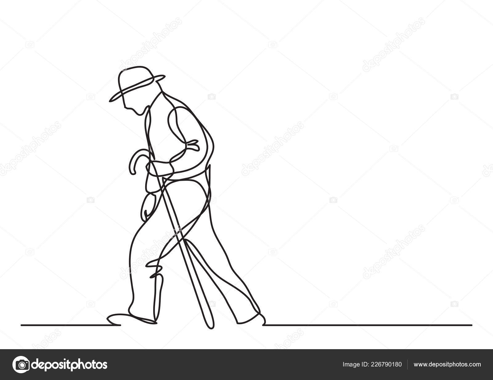 Old Man Walking Single Line Drawing Stock Vector Image By C Onelinestock 226790180
